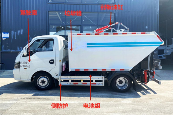 1、該產品為新能源車輛,新能源類型為純電動;該車主要專用裝置為垃圾箱、翻轉上料裝置、舉升卸料裝置、填壓機構、液壓系統等,主要用于垃圾收集清運.卸料方式為后卸式.2、側防護材料為鋁合金,螺栓連接;后防護由專用裝置代替,下邊緣離地高:330mm.3、該車整備質量包含隨車工具、停車楔.貨廂重量1630kg,貨廂材料為Q235,厚度(mm):底板4.0/側板3.0/頂板2.5;4、儲能裝置種類為磷酸鐵鋰蓄電池,儲能裝置單體/總成生產企業:寧德時代新能源科技股份有限公司/寧德時代新能源科技股份有限公司,驅動電機的額定/峰值功率分別為:50kW/110kW.ABS控制器型號/廠家:YF8/武漢元豐汽車電控系統有限公司.5、該車可選裝直接供電式ETC車載裝置.后部作業燈具僅用于作業狀態下使用,車輛行駛過程中關閉.