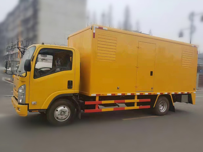 應急發電車是裝有裝置的專用車可稱為移動電源車、應急電源車、發電車。電源車具有移動性,良好的對各種路面的適應性。可裝配柴油發電機組(30-1000KW)。裝配發電機組的車廂要求消音降躁,還要配置**油箱,電纜卷盤,照明燈等設備。
