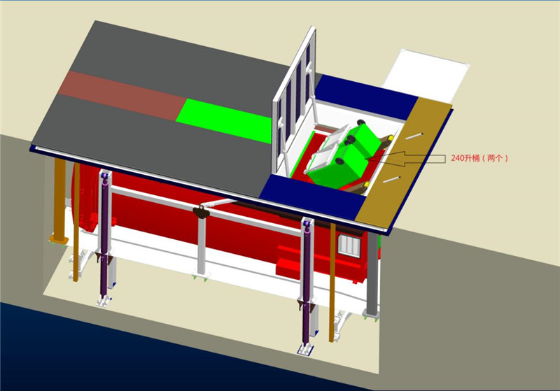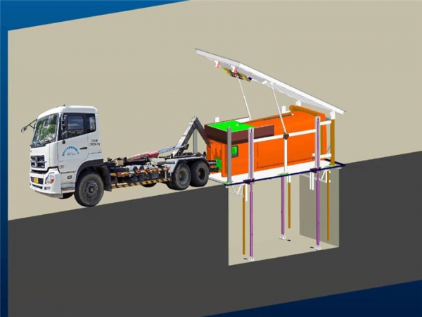 只要將地埋式垃圾箱上蓋打開(kāi),垃圾箱的推頭就會(huì)把推頭室的垃圾推到垃圾貯料倉(cāng)從而達(dá)到垃圾壓縮功能。
